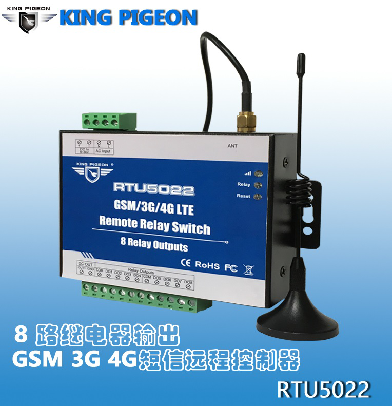 GSM 3G 4G RTU短信远程控制器RTU5022采用工业级设计,专为工业远程控制设备,采用稳定可靠的高性能微处理器MCU, 内置工业级GSM/GPRS/3G/4G通信模块,适用于中国移动、中国联通的GSM网络、中国联通的WCDMA 3G网络以及中国移动、中国联通、中国电信的4G网络,是一款最具性价比的远程短信控制器,提供8路继电器输出用于控制设备的开关或者启停,广泛用于工业现场、农业、水泵、机房等场所的远程设备控制场合。