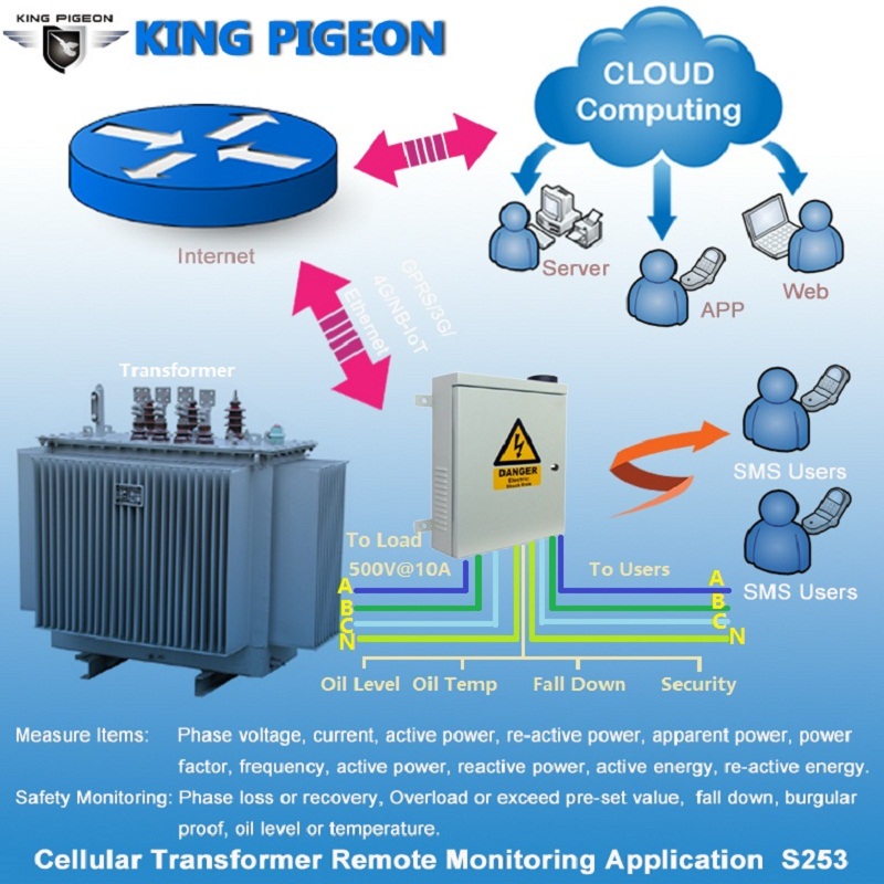 GSM 3G无线配电智能计量监测报警终端是专为100~400VAC配电系统设计,既可用作智能电表计量电流、电压、功率、有功功率、无功功率、频率等电量参数,当过流、过压时则立即以短信或者拨号报警。同时可测量变压器的油温、油压、当超高或超低时则立即短信或者电话报警,此外,还可以用作为变压器的防盗报警以及安全性的监测,如歪斜、振动、高温等等。