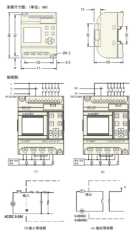 安装:35mm标准的DIN导轨或螺钉固定安装