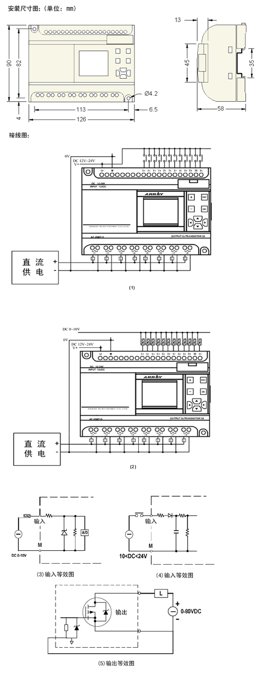 直流供电,12点DC(带模拟量)输入,8点晶体管输出