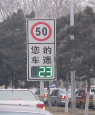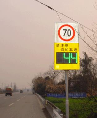 当车辆进入“车速反馈标志(DFS)”的雷达的检测区域时(大约为标志前部10m到300m的范围内),微波雷达将自动探测车辆行驶的速度,并在LED显示屏上予以显示及时提醒驾驶员注意降低行驶速度,从而有效减少因超速引发道路交通事故的发生。