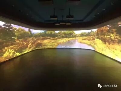 分别采用了INFOPLAY公司研制的2通道L型、3通道弧形、9通道三折幕及K5等高清融合播放技术。在核心部件INFOPLAY融合技术协作下,达到用户展厅屏幕需求。全屏高清,无物理缝隙,且画面色温、色差一致。