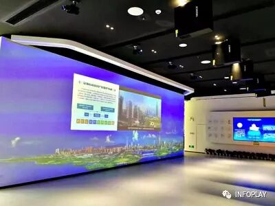 此项目除常规显示外,其中环幕及地面结合的LED沙盘上INFOPLAY提供了激光笔与内容交互的功能。