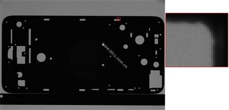 手机内壳上许多孔并不是位于同一平面,使用普通镜头不能一次拍摄完成,且检测精度不高。