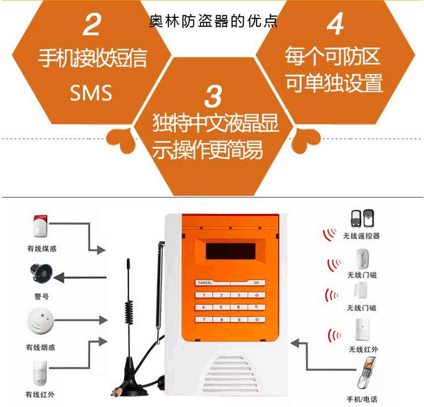 奥林有线无线智能防盗报警器家用店铺GSM门窗红外遥控远程防盗器