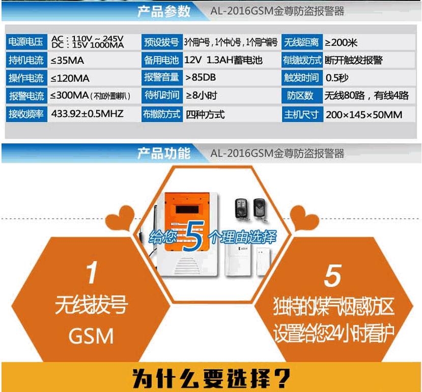 型号:奥林金尊GSM防盗报警器