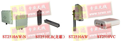 ST2510系列数字无线设备工作于2.4GHz频段,采用1×1 MIMO技术,最高带宽可达150Mbps。用户界面图形化,支持中英文界面,便于国内外的工程技术人的调试和安装。ST2510AW和ST2510VC内置14dBi单极化平板天线,增益高、角度大,在3km距离传输带宽可达70~80Mbps。ST2510AW-N和龙霸ST2510LB为外置天线设备,在应用中可根据需要增加合适的天线,传输距离最远可达5km以上。