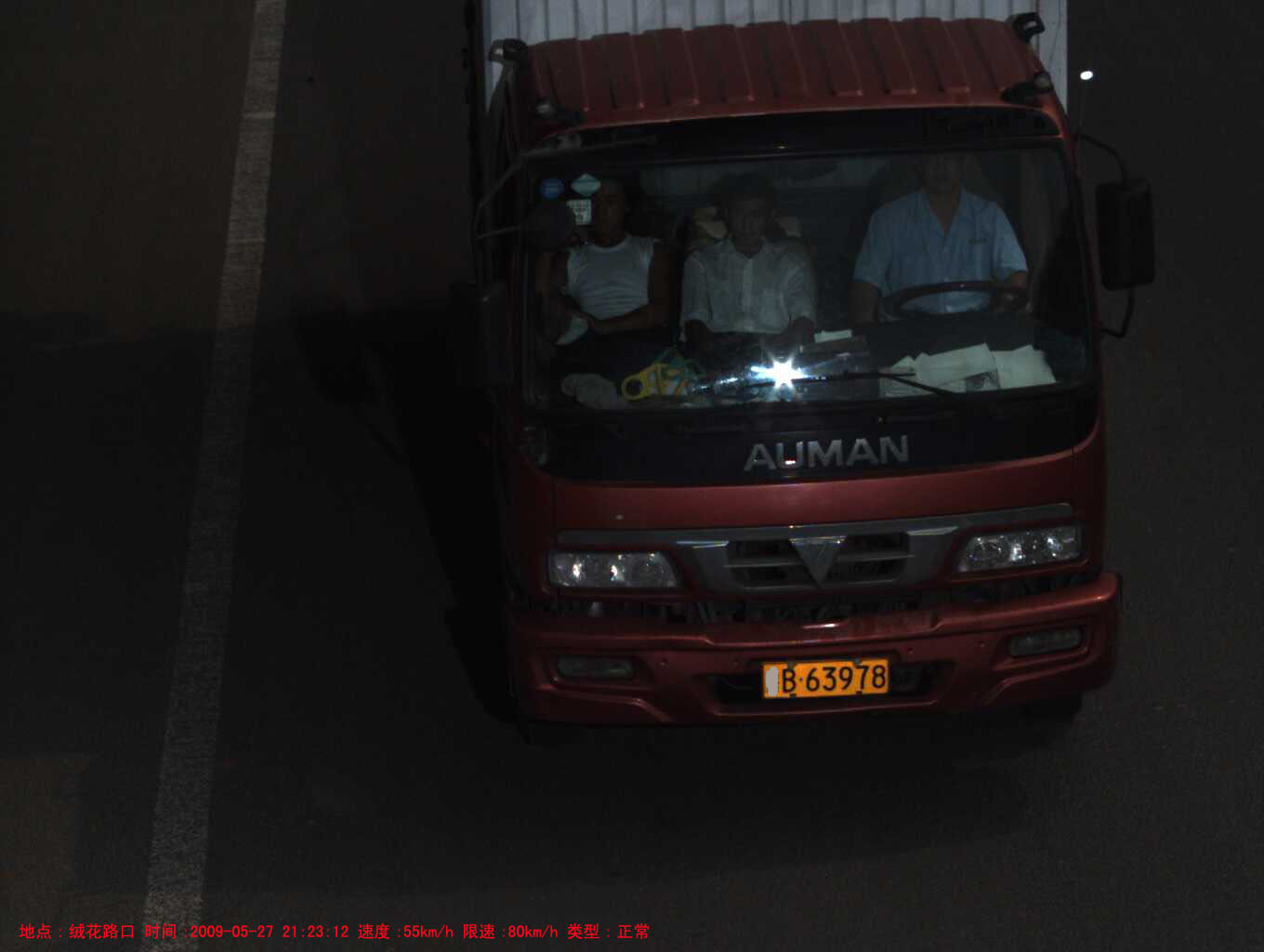 系统对通过检测线圈的每个车辆进行图像抓拍,照片为1660×1024×24bit分辨率,高达140万像素(工业级高清网络相机,千兆网口,140万像素、200万像素和400万像素,无论白天晚上都能清晰别人驾驶室里的情况。),每次一张照片,能够清晰识别车牌,并能看清驾驶室里的实况。在抓拍图像中,系统能够将检测到的车辆基本信息,如日期、时间、地点、方向、牌照号、车速、车辆类型(嫌疑、超速、正常)等叠加在图像上,便于人工判别及事后取证。由于照片信息量很大,能够清晰别人驾驶员和副驾驶室的情形,对于治安破案提供重要的证据。