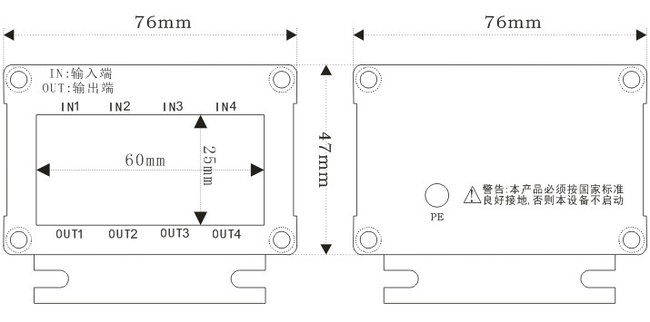 四路网络防雷器尺寸、安装图: