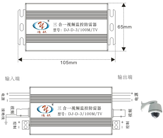 用途:主要用于带云台摄像机/球机/动点机防雷保护;可选电压:12-48V、220V。