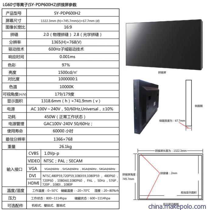 供应Kreacica 60寸等离子无缝拼接屏(SY-PDP600H2)