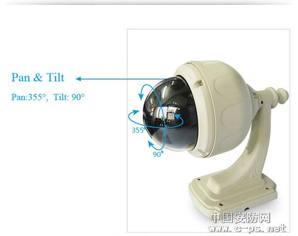 4.自带云台,水平355度,垂直90度,转速15-70度/秒可调