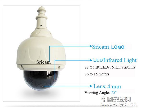 Sricam施瑞安AP006室外云台红外夜视吊顶无线网络球机