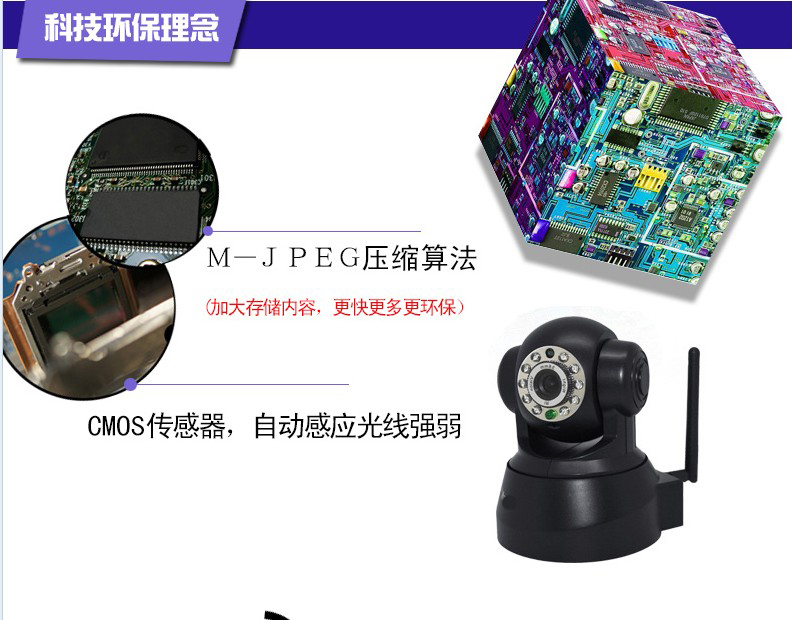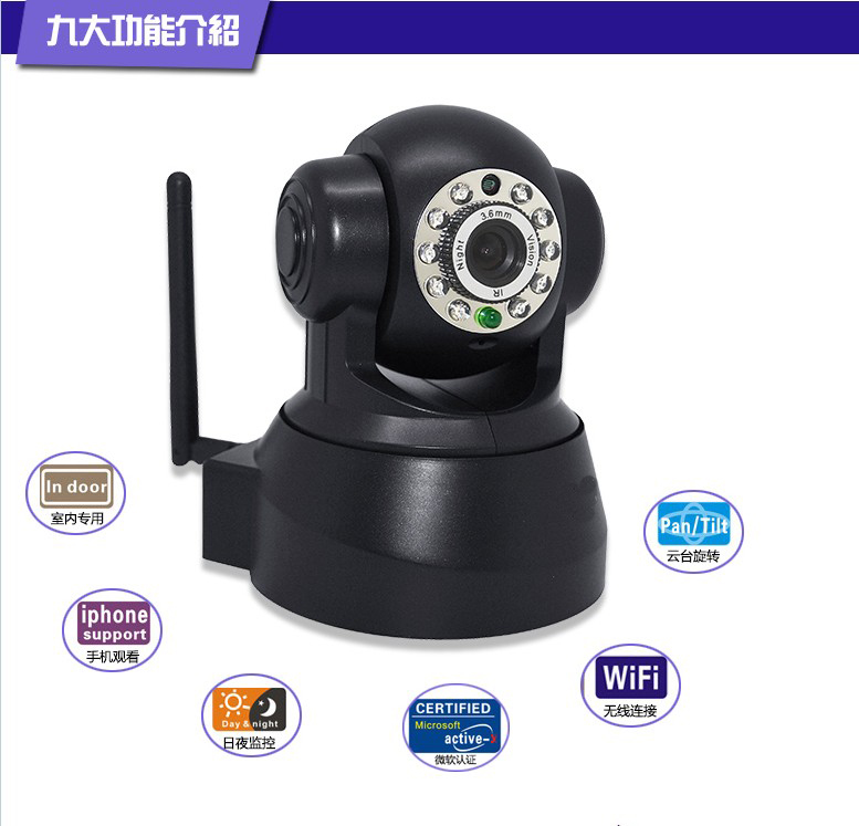 免费P2P即插即用室内云台红外夜视10米网络摄像机