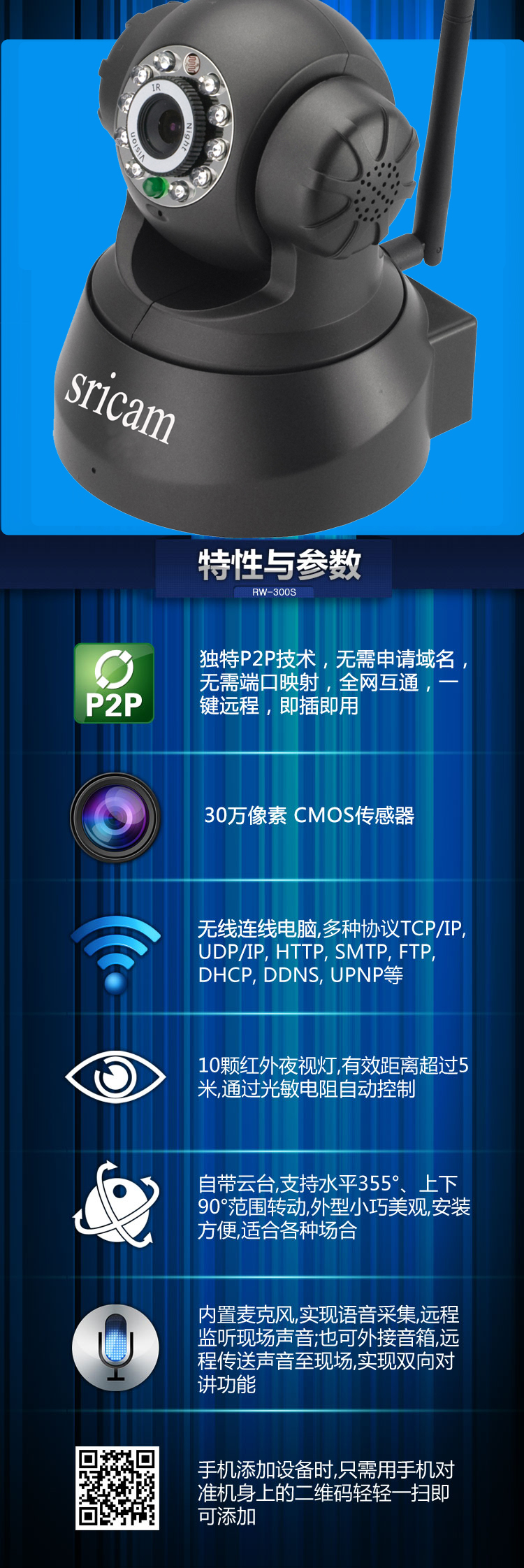 7.免费P2P, 即插即用,无需端口转发,支持二维码扫描
