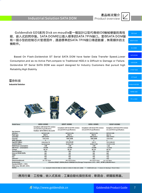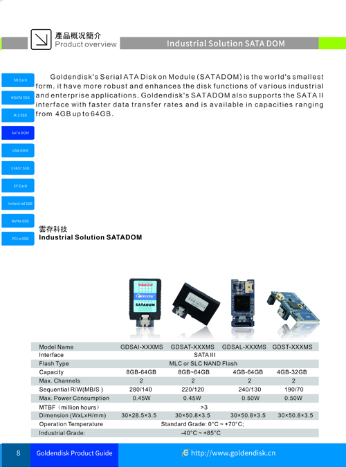 Glodendisk-SAL系列SATA DOM电子硬盘专为追求高可靠性、高稳定性的行业客户而设计。