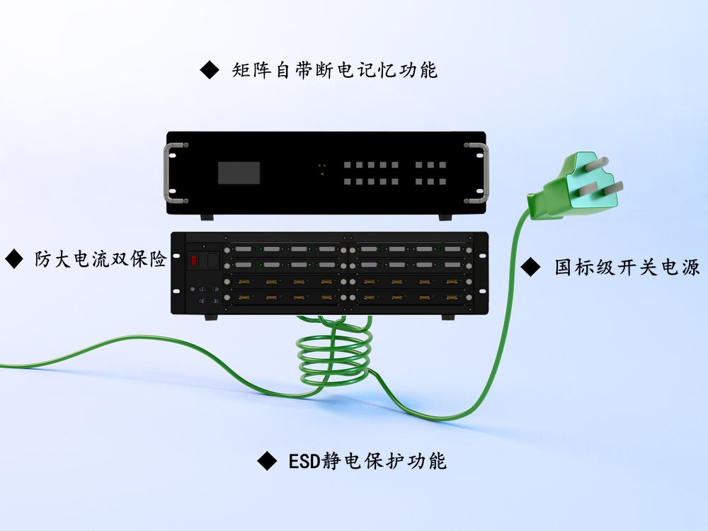 6.高清矩阵自带断电记忆功能,有效保护了现场原有画面状态情况;