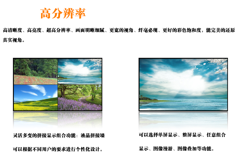 1. 全新原装三星工业级拼接屏,性能稳定,使用寿命高达6万小时以上。