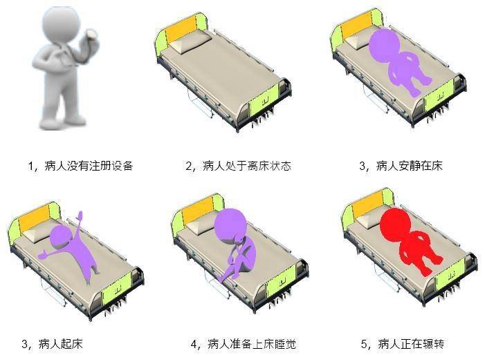 (8)夜间离床监督:经过监督患者夜间离床的时刻点和长短来确认患者的反常离床状况并即时向医护人员报警。