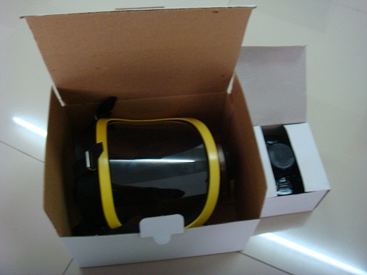 主要由橡胶罩体、五点式头带、视窗镜片、传声通话器、口鼻罩、呼气阀及过滤罐或过滤盒组成,使用大型、中型罐时需配备导气管和腰包。