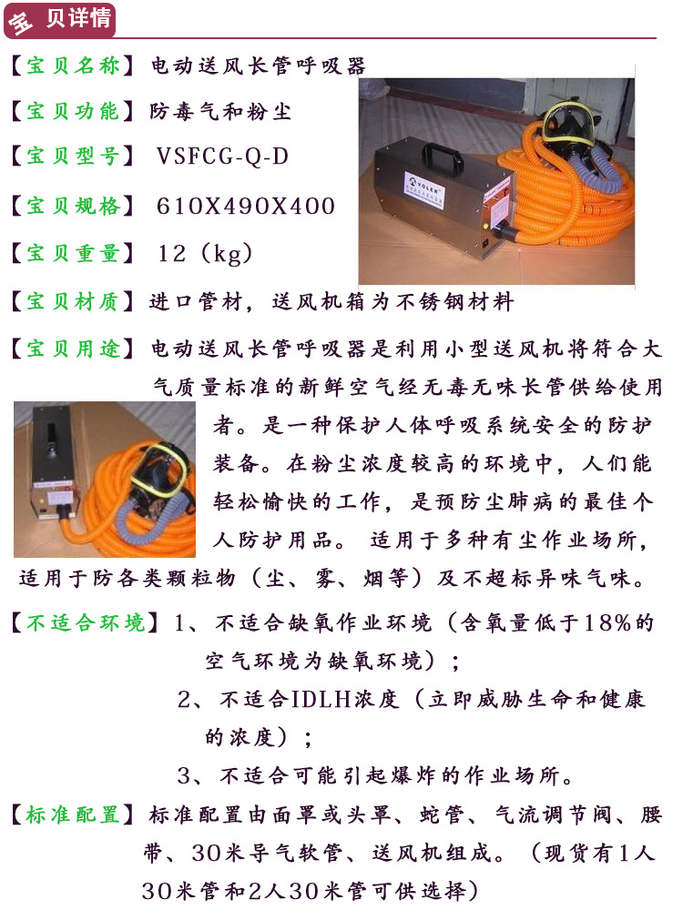 产品名称:电动送风长管呼吸器 (送风式长管面具/强制送风长管面具/自吸面具/长管面具)