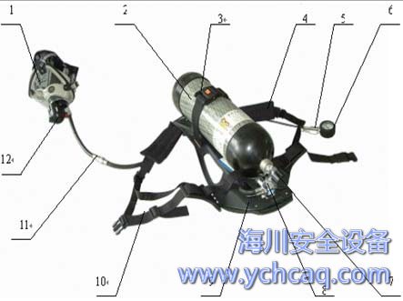1.空气呼吸器面罩:为大视野面窗,面窗镜片采用聚碳酸酯材料,具有透明度高、耐磨性强、具有防雾功能,网状头罩式佩戴方式,佩戴舒适、方便,胶体采用硅胶,无毒、无味、无剌激,气密性能好。 2.空气呼吸器供气阀:结构简单、功能性强、输出流量大、具有旁路输出、体积小。 3.空气呼吸器腰带组:卡扣锁紧、易于调节。 4.空气呼吸器快速接头:小巧、可单手操作、有锁紧防脱功能。 5.空气呼吸器减压器:体积小、流量大、输出压力稳定。 6.空气呼吸器瓶头阀:具有高压安全装置,开启力矩小。 7.空气呼吸器背托:背托设计符合人体工程学原理,由碳纤维复合材料注塑成型,具有阻燃及防静电功能,质轻、坚固,在背托内侧衬有弹性护垫,可使配戴者舒适。 8.空气呼吸器肩带:由阻燃聚酯织物制成,背带采用双侧可调结构,使重量落于腰胯部位,减轻肩带对胸部的压迫,使呼吸顺畅。并在肩带上设有宽大弹性衬垫,减轻对肩的压迫。 9.空气呼吸器压力表:大表盘、具有夜视功能,配有橡胶保护罩。 10.空气呼吸器报警哨:置于胸前,报警声易于分辩,体积小、重量轻。 11.空气呼吸器瓶带组:瓶带卡为一快速凸轮锁紧机构,并保证瓶带始终处于一闭环状态。气瓶不会出现翻转现象。 12.空气呼吸器气瓶:为铝内胆碳纤维全缠绕复合气瓶,工作压力30MPa,具有质量轻、强度高、安全性能好,瓶阀具有高压安全防护装置。 |