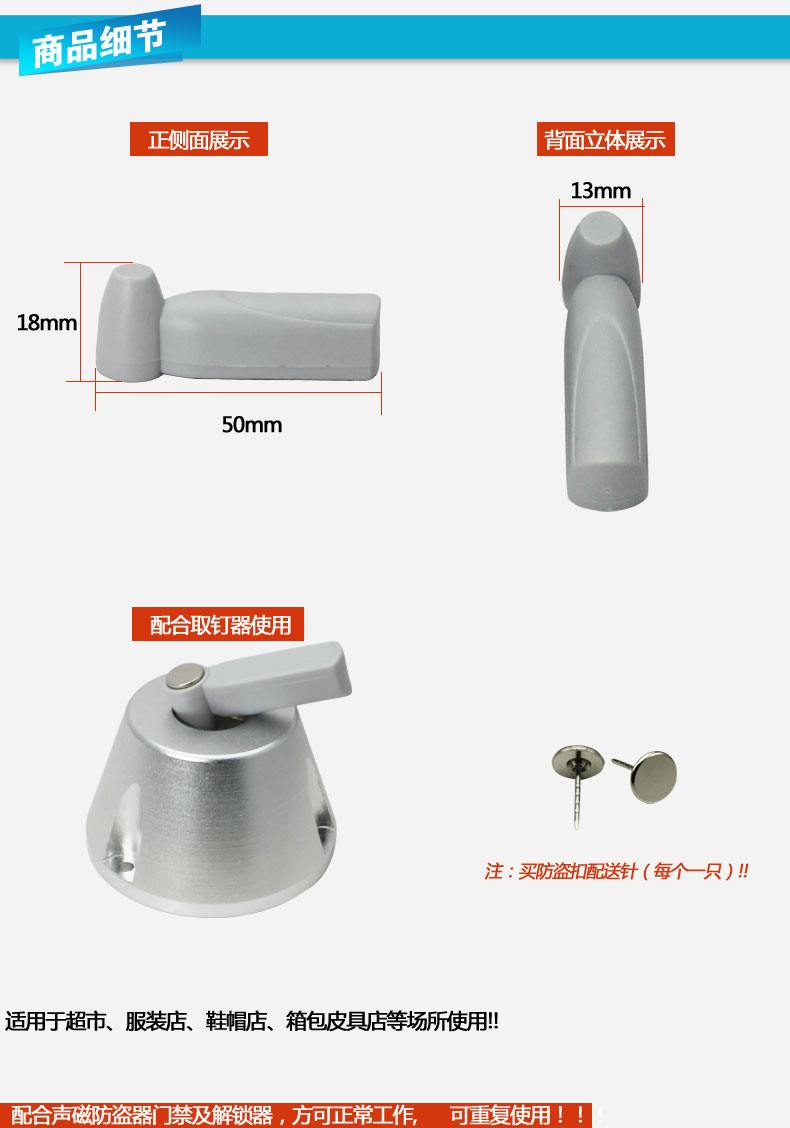 美庆防盗系统主要用于服装品牌店、大型商场超市、母婴童装店、皮具箱包店、高级化妆品店等开放式卖场,由防盗门、防盗标签、解扣器(消磁器)配套组合使用,能更好的降低失货率。