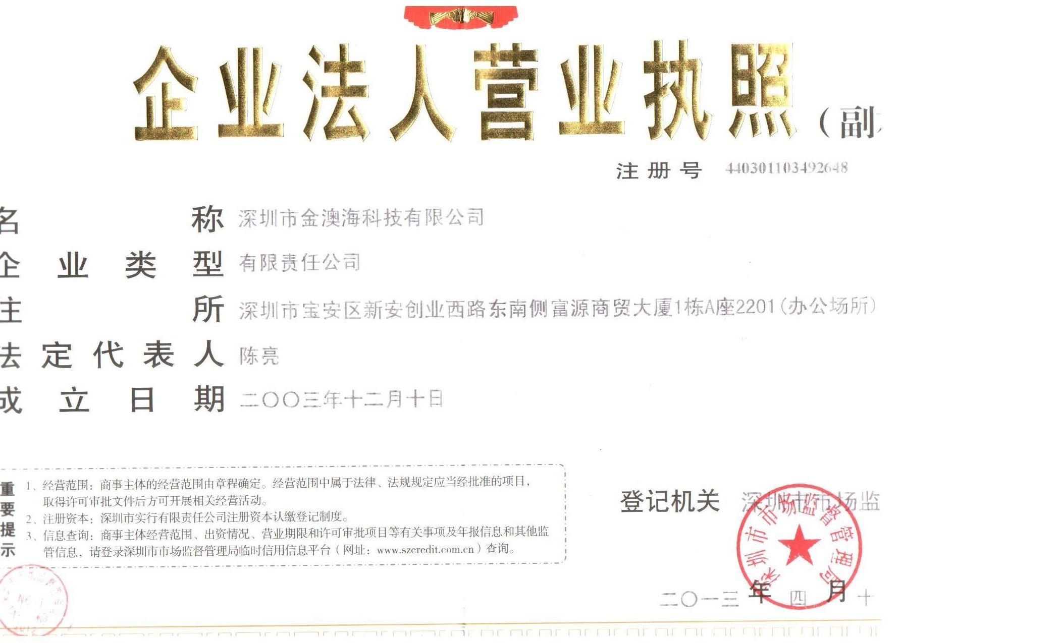 深圳市金澳海科技有限公司