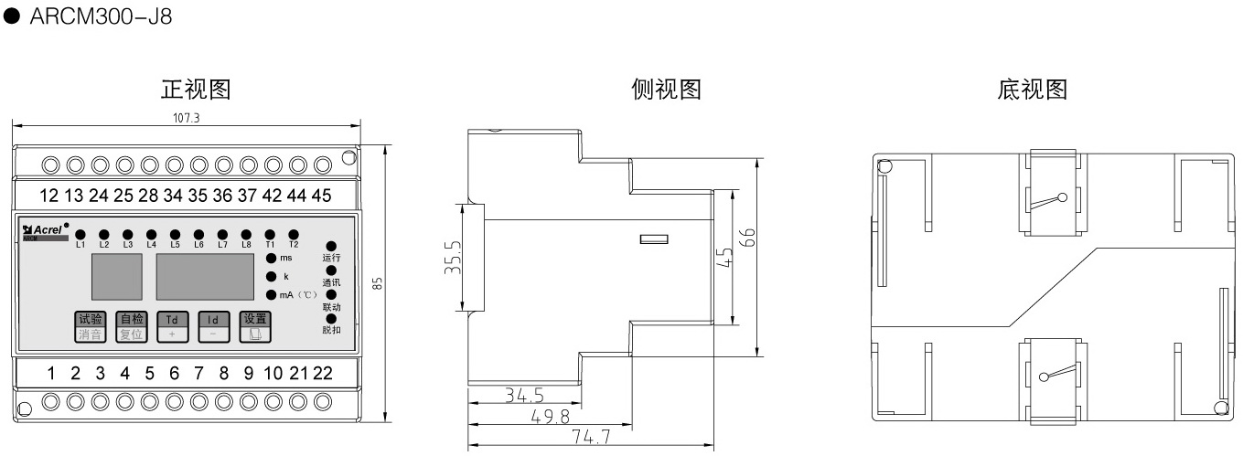 ARCM200L-Z: 三相电压、电流、功率、频率、四象限电能监测,过压、缺相、过流保护