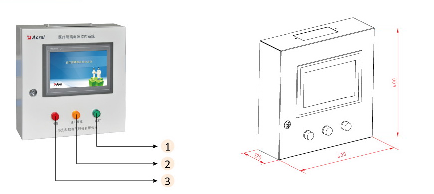 医用隔离电源监控器柜可对安装于各ICU病房、重症监护室的IT系统的运行状态进行集中的、实时的监测与显示,监测参量含IT系统对地绝缘电阻、变压器负荷电流、变压器绕组温度及绝缘故障回路等;系统具有一次图及现场分布图显示功能,便于及时、直观地发现IT供电系统的报警地点或区域;