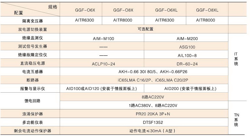 注:GGF-IXF和GGF-OXF隔离电源柜为隔离变压器外置,分体式安装的配电柜。