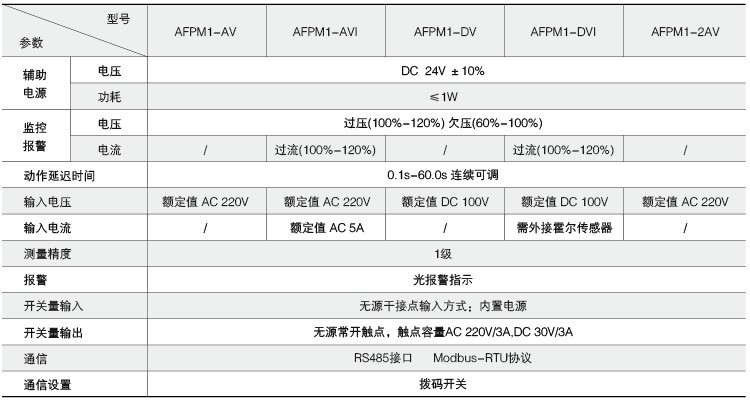 5.1 AFPM1-AV、AFPM1-AVI、AFPM1-DV、AFPM1-DVI、AFPM1-2AV单相电源监控模块