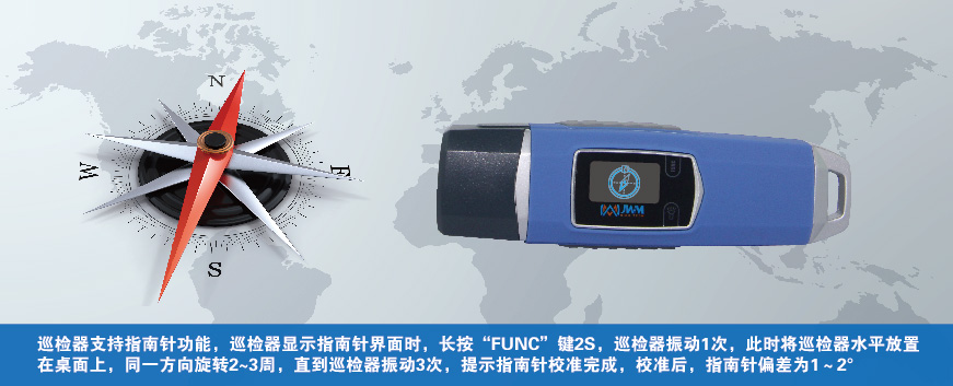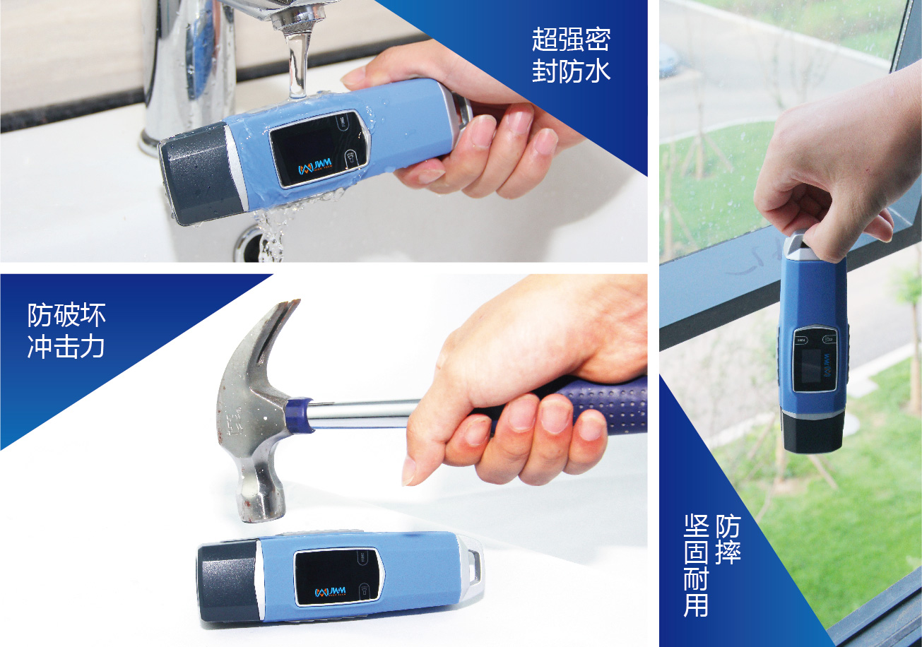 采用军工级元件,橡胶外套,金属外壳,硅胶内胆,防护等级为IP67;同时巡检器还集成了高亮手电照明、指南针、温度计及OLED液晶屏。