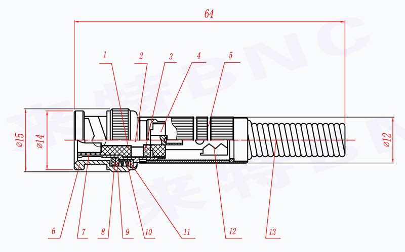 *****以下为来特BNC接公头关键部件的材质介绍