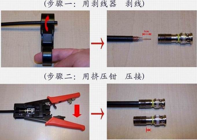 配套必备:挤压视频头、小刀(剥线器)、挤压钳、单股同轴电缆线75-4/-5