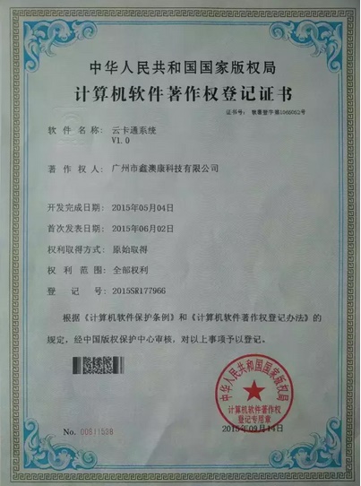 喜报:鑫澳康科技云卡通国家专利证书来啦!