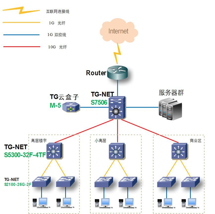 2、核心层和汇聚层交换机采用基于多处理器分布式处理机制和Crossbar空分交换的体系结构。大流量转发毫无压力。接入交换机全千兆端口,实现千兆到桌面,带来飞一般的上网体验。