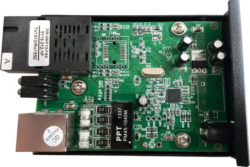 符合IEEE802.3/802.3u标准。具有10M/100M自适应功能,实现双绞线与多模(单模)光纤之间的信号转换。双绞线接口为RJ45。光纤接口有ST,SC,FC,LC等。有全/半双工传输方式。全双工方式多模光纤最长2公里,半双工方式多模光纤最长412米,单模光纤最长有20-120公里(全双工时)等多种规格型号。