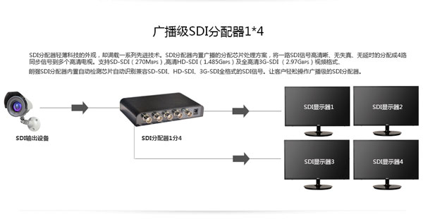 sdi分配器1进4出,1x4 hd-sdi分配器