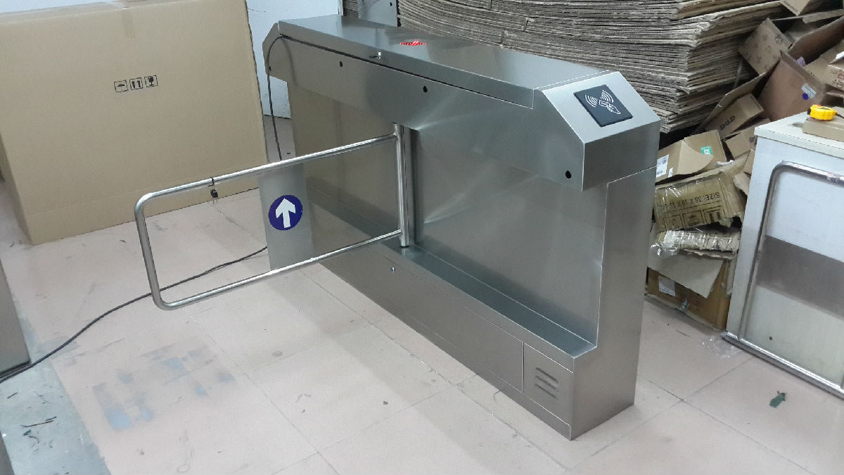 设备外形采用不锈钢板冲压成型,造型美观大方、防锈、耐用,并且对外采用标准电气接口,能方便地将条码卡、ID卡、IC卡等读卡器集成在本设备上,为出入人员提供文明、有序的通行方式,同时又可杜绝非法人员出入;另外系统还专门设计了满足消防要求的功能,在出现紧急情况时,保证通道畅通无阻,方便人员及时疏散。