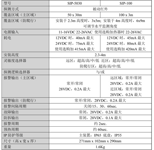 SIP-5030能够为室外大范围区域提供广角的监测。它具有一个智能的探测系统,能够根据周围环境如温度、光照条件等的数据来自动调节灵敏度。