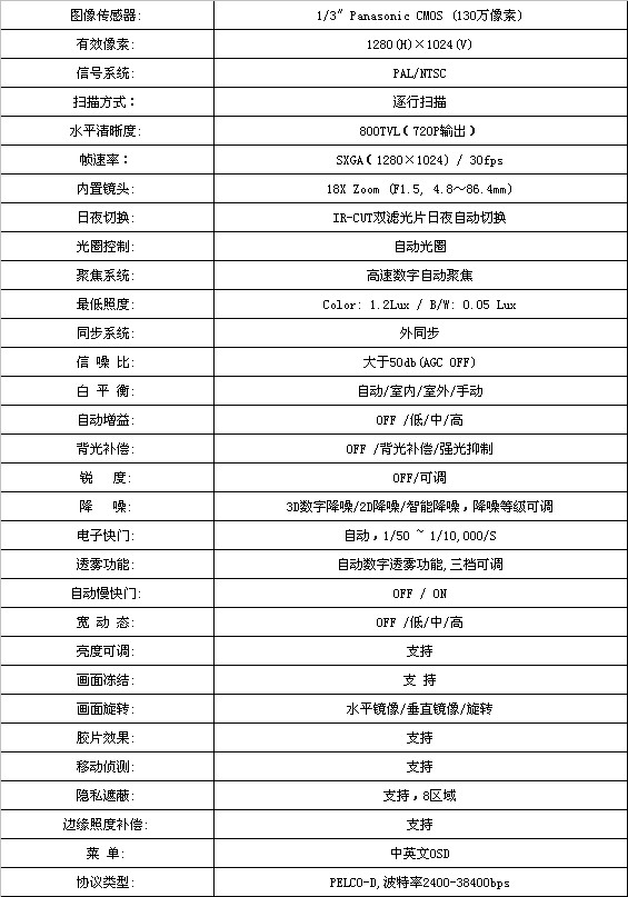可扩展云台、镜头控制功能;