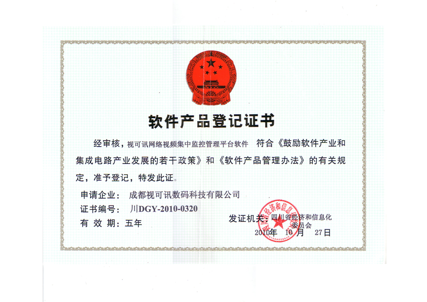 软件产品登记证