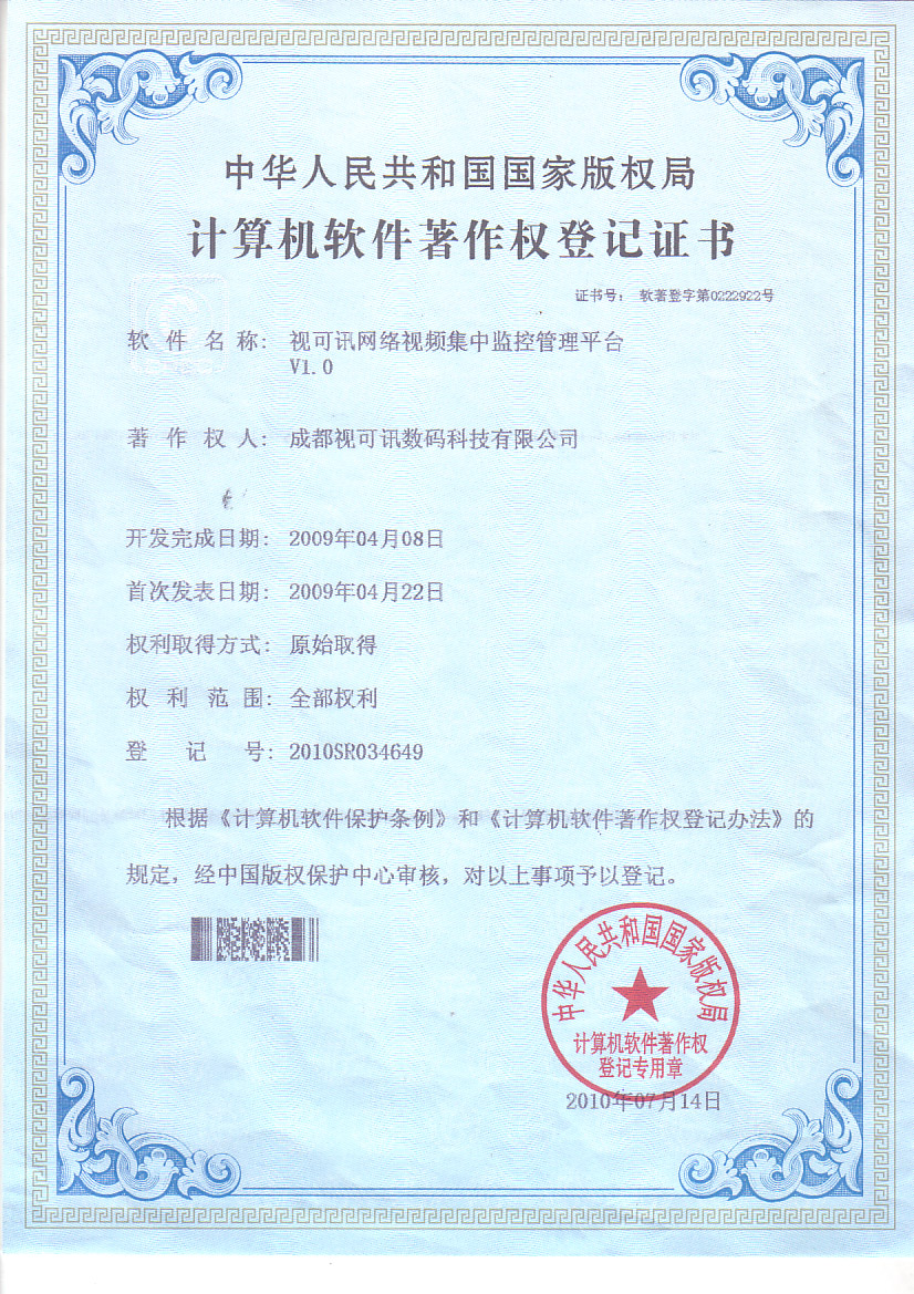 计算机软件著作权登记证书