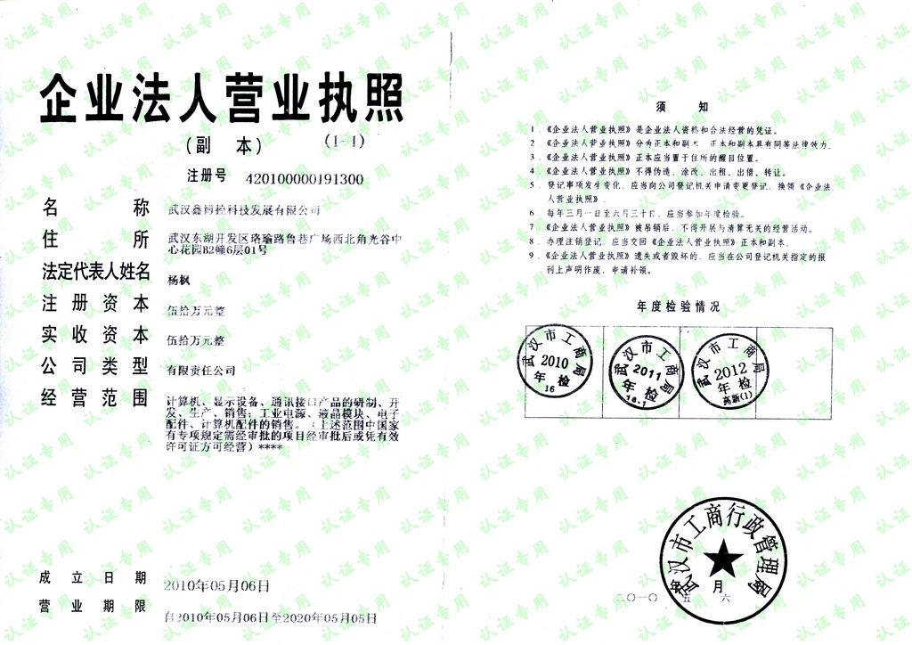 工业计算机、显示设备、通讯接口产品的研制、开发、生产、销售;工业电源、液晶模块、电子配件、计算机配件的销售