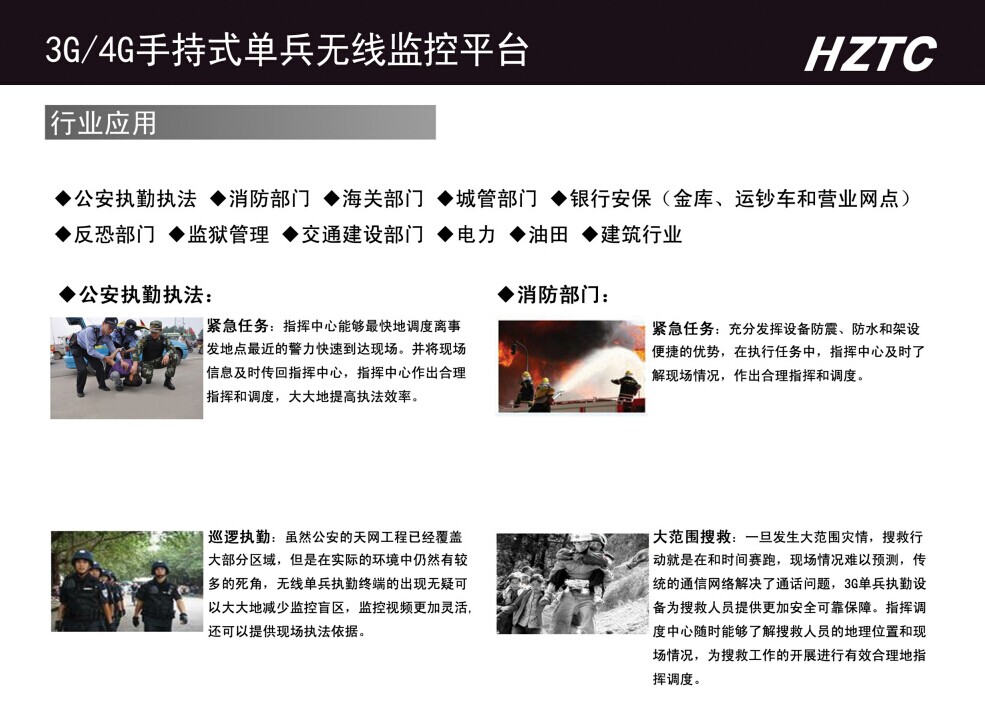 手持单兵无线监控终端是一款支持3G、4G网络传输、语音对讲、GPS定位、SD卡录像等功能的便携式移动视频监控终端。