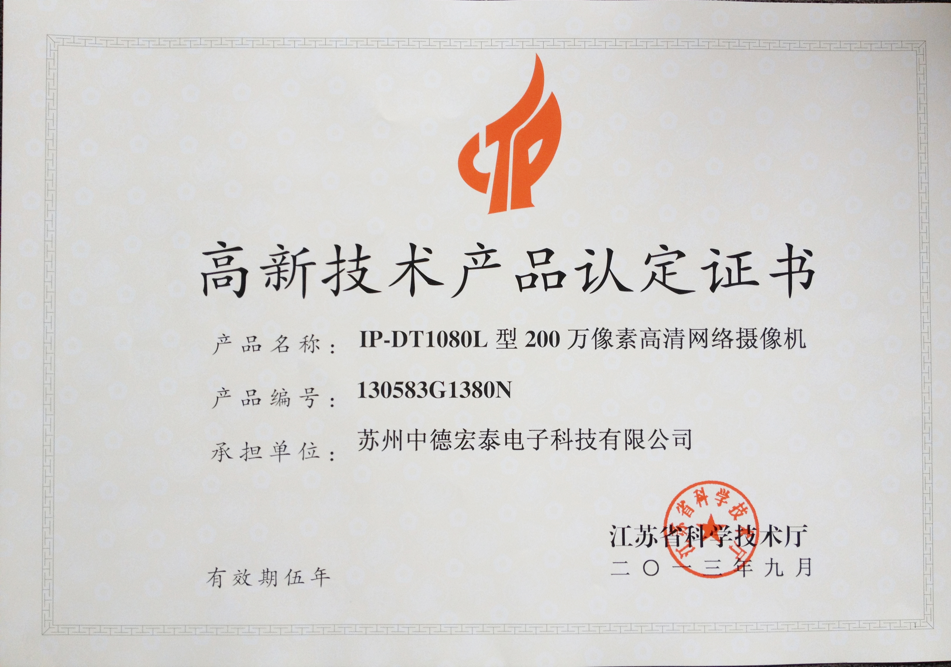 高新科技产品认定证书