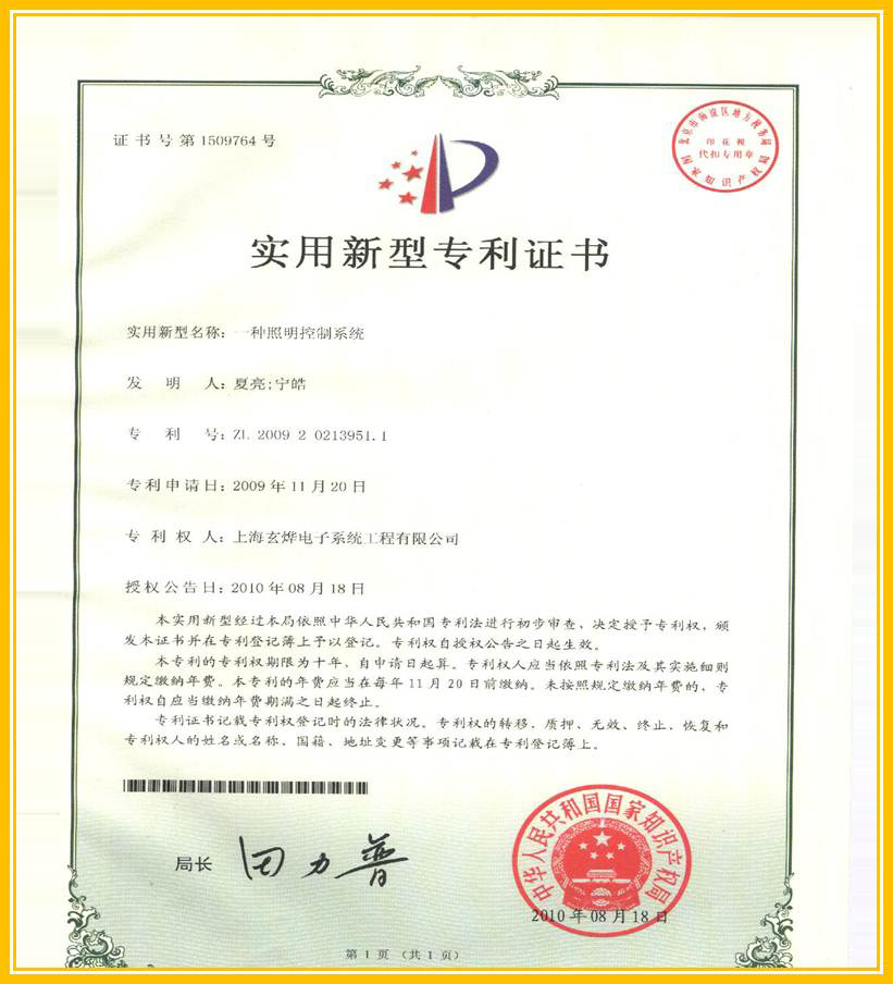 实用新型专利证书