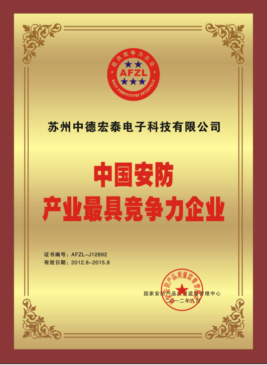 中国安防产业最具竞争力企...