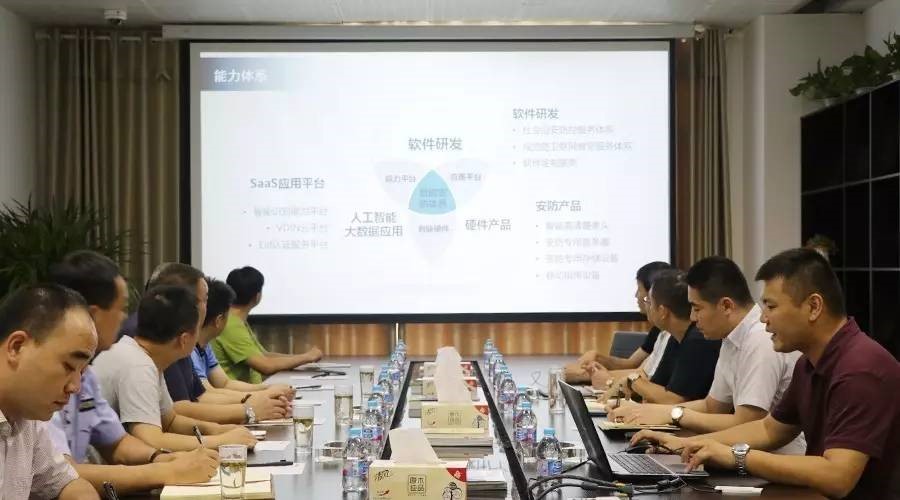 市场部副总经理王怀伟就近年来公司整体发展经营状况做了详细汇报,并向吕支队长一行详细介绍了社会治安综合防控系统——开锁业子系统、民宿业子系统、寄递业子系统、“深眸”动态人像识别系统、视频智能检索、大数据分析处理服务平台等相关产品线,对公司未来的发展规划做了一一介绍。